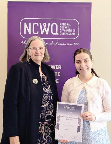 The Annual Forum State Dinner was held on the Saturday evening at the Lions Club of Redlands City where the winner of the NCWQ (National Council of Women of Queensland Inc) Bursary for Public Speaking, donated annually by Forum Communicators, Jessica Davidson (at left with Forum President Irene Henley), was the afterdinner speaker.