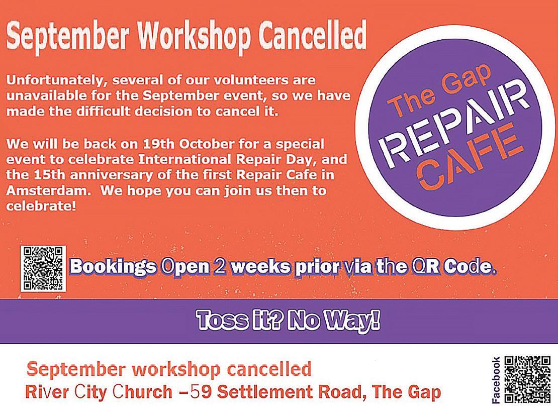 Check the September calendar under the Events tab on The Gap She Shed Community Facebook page for dates and times of all events and activities: www.facebook.com/groups/thegapsheshed or email hello@thegapsheshed.au