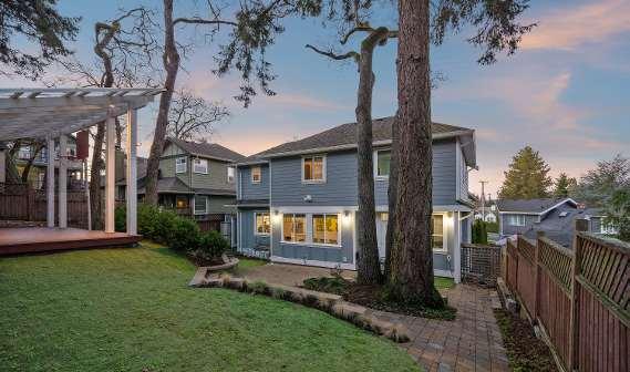 Beautifully maintained Arts and Crafts-style home in a prime, family-friendly neighbourhood close to all levels of schools, parks, and everyday amenities. The flexible layout offers room for everyone, with 2 bedrooms on the main floor, 3 bedrooms upstairs, and a 2-bedroom suite below—ideal for extended family or mortgage support. Reclaimed fir flooring from a Victoria heritage school adds timeless warmth. Thoughtful upgrades include a custom Corian kitchen island, central vacuum, Hunter Douglas blinds, upgraded GE laundry (2023), modern thermostats, and added soundproofing in the stairwell and suite bedroom wall. The fully landscaped backyard is perfect for outdoor play and entertaining, featuring artificial turf, pavers, and a pergola-covered deck. The garage includes a cedar door, a practical mudroom entry, and storage space. A rare opportunity to own in a bare land strata community with exceptionally low strata fees of just $35/mo. A versatile, move-in-ready home tailored for modern family living.