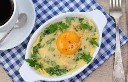 This is done by baking the egg. Eggs are cracked and placed in an oven-safe cup. Butter is placed on top of the uncooked egg, and then the egg is baked for a certain time.