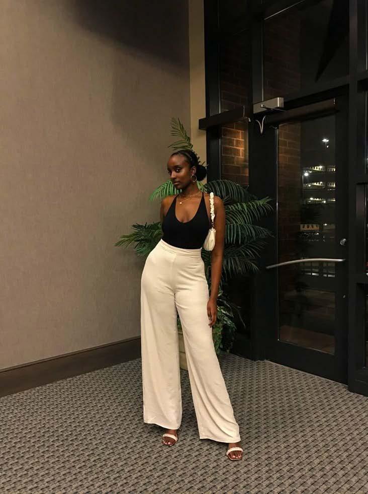 One of the easiest ways to style a tank top is with high-waisted pants. This look is simple yet stylish. High-waisted pants help define your waist and give your outfit a more put-together feel. Add a pair of sneakers or slides, and you’re good to go. To elevate the outfit, throw on some layered necklaces or hoop earrings, and you’ll look effortlessly cool without trying too hard.