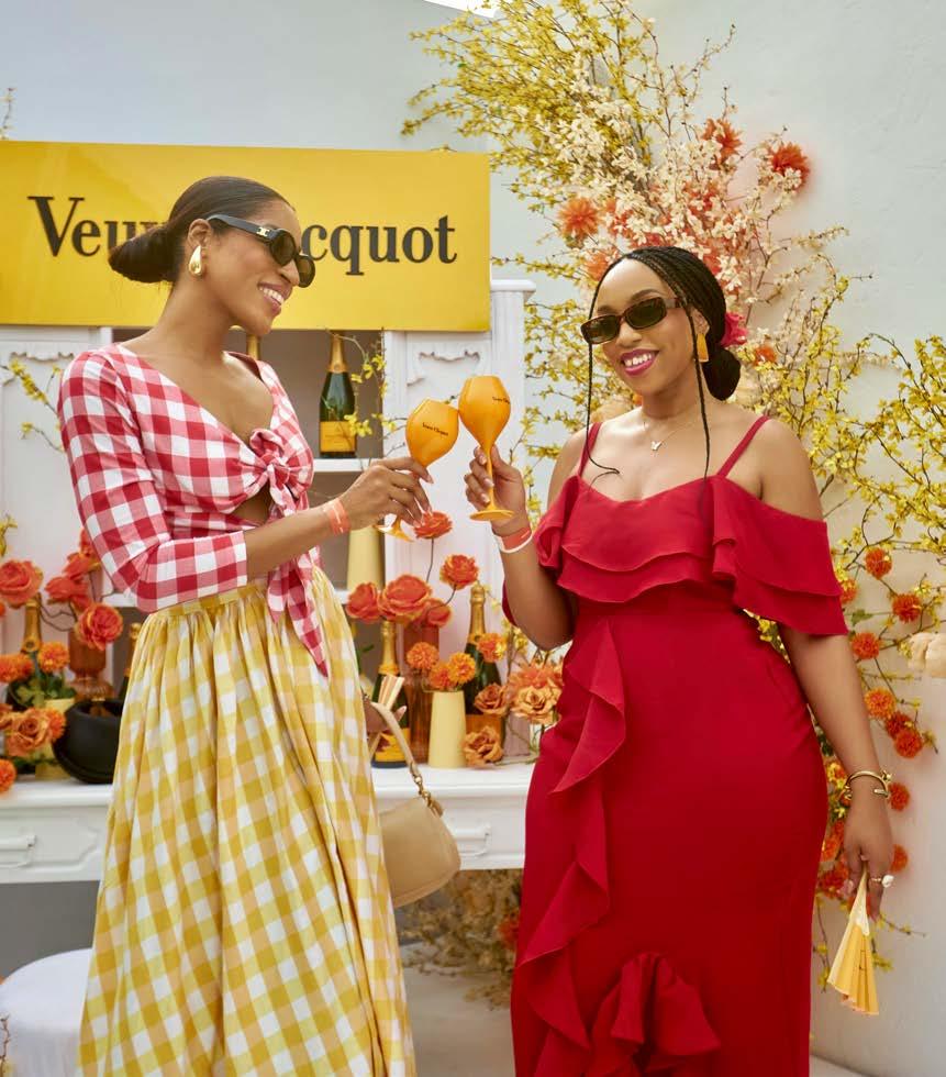 After shooting the first episode of the show, I attended an event at the Lagos Polo Club and I had a really good time watching the game, networking, connecting with friends, and of course, taking photos, and videos and sipping on the finest Veuve Cliquot champagne. I was able to try a mix of pineapple and cucumber in my champagne when I went to the bar and it was so yummy! The pineapple fruit added a nice tangy sweetness while the cucumber added a herby freshness to it. The best of both worlds really. The dress code on the invite said “Be Solaire,” but to be on the safe side, I asked my friends at Redrick PR and they told me it means “bright colour.” So it was perfect for me because I love colours. I ended up wearing a long, red, off-shoulder dress from a collection I did some years ago. I styled it with gold kitten heel sandals,