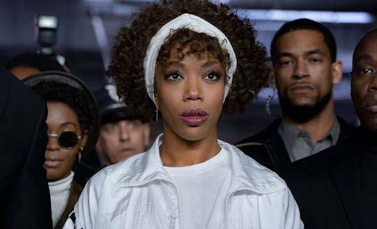Actress Naomie Ackie, who looks enough like Houston to pass for her, gamely lip-syncs to the original vocals. What’s disappointing, however, is the lack of coverage. Few of Houston’s songs are presented in full (those with the most complete renditions are the title number and her massive hit from The Bodyguard, I Will Always Love You), with a few only getting name-checked or represented by short snippets. In much the same way that McCarten’s script for Bohemian Rhapsody put a re-creation of Queen’s iconic Live Aid show at the end of that movie, Houston’s memorable 1994 AMA performance is lifted out of chronological order and placed just before the end credits.