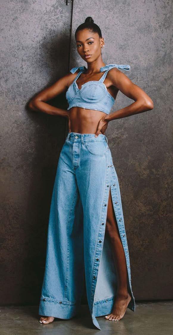 are very limited job opportunities for women in Nigeria, where they feel valued. It’s important for women to have their own. This builds on her confidence to fight for her right to be respected. I have spoken at conferences, and I support charities that don’t deal with the physical damage of genderbased violence but start right at the beginning, which is education. Educating children and adults that no means no and we must respect each other. Gender-based violence is a pervasive issue globally. What motivated you to actively contribute to the cause, and how do you see the fashion industry playing a role in promoting awareness and change?