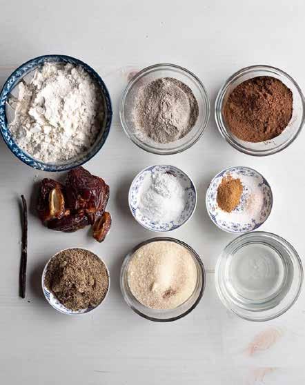 1. Preheat oven to 350°, then butter your brownie or cake pan. Add your gluten-free and buckwheat flour, cocoa powder, cinnamon, baking powder, baking soda, and salt in a bowl, then mix all together.