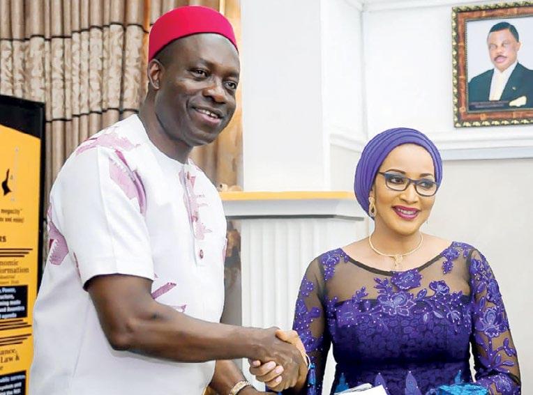 L-R: Governor of Anambra State, Professor Chukwuma Charles Soludo and Secretary, Truth, Justice and Peace Commission, Ambassador Bianca Ojukwu, during the presentation of the Commission report to the Governor in Akwa Anambra State on February 17, 2023.