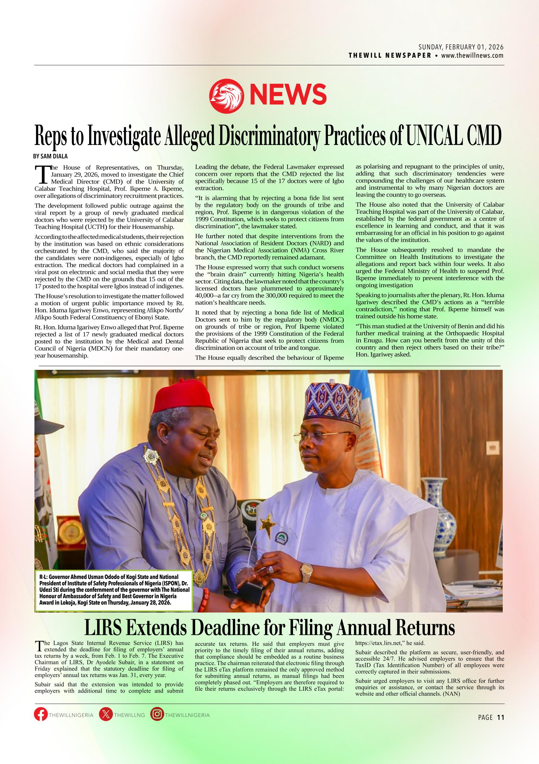 THEWILL NEWSPAPER FEBRUARY 01, 2026