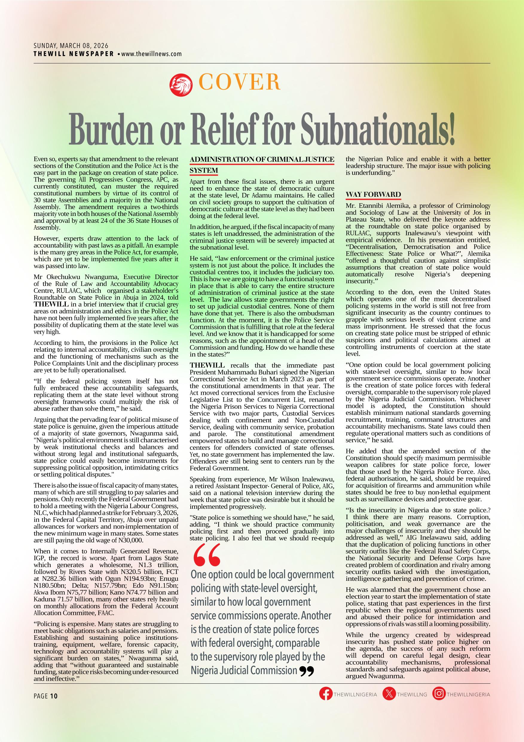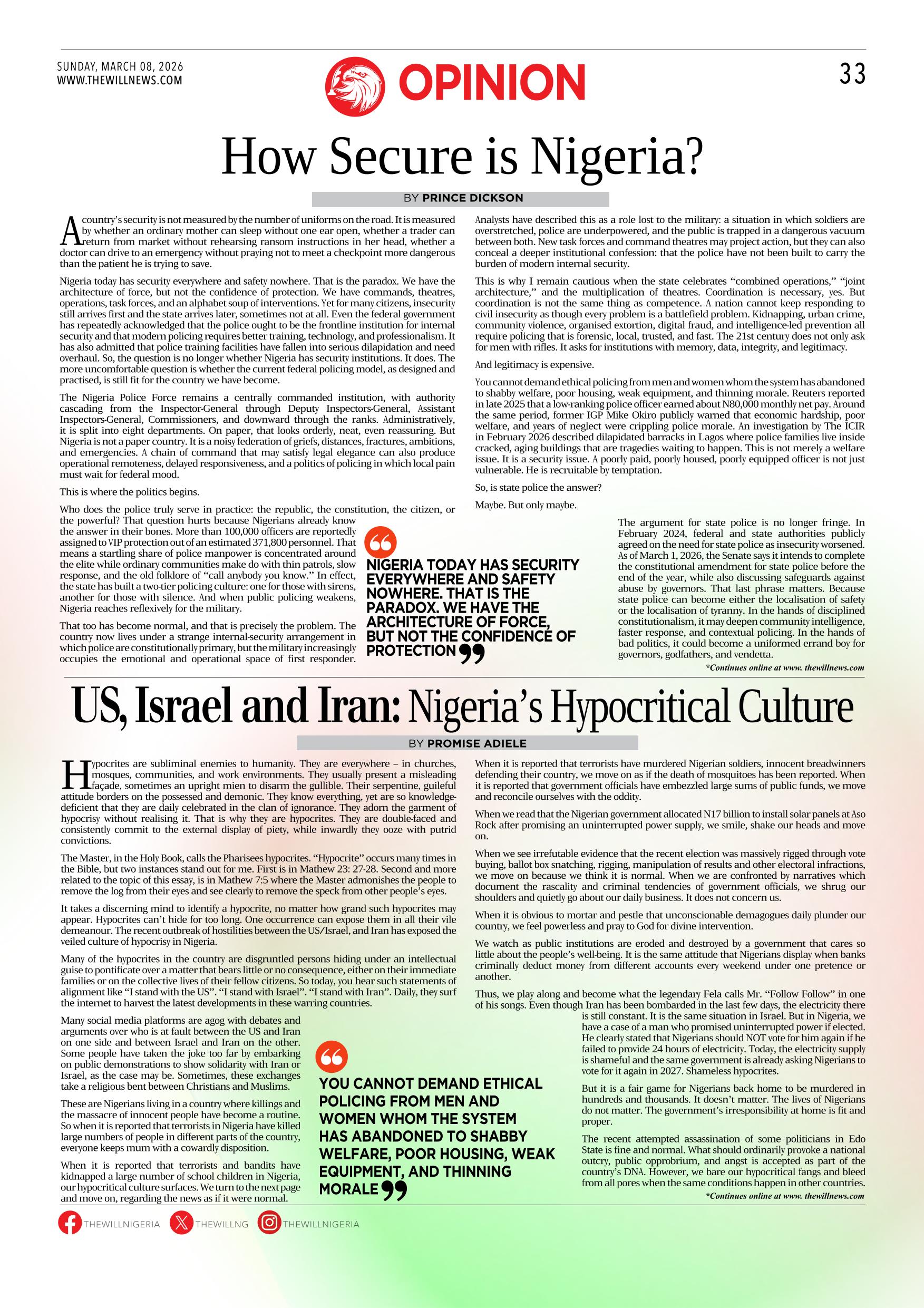 THEWILL NEWSPAPER MARCH 08, 2026