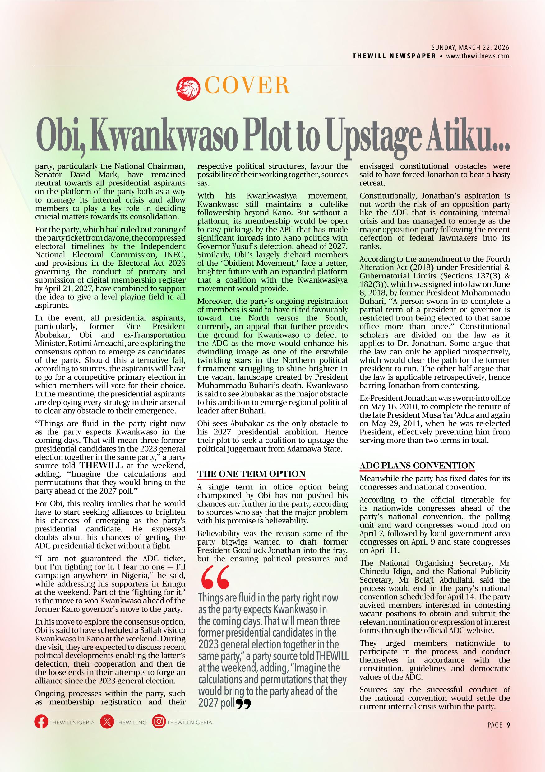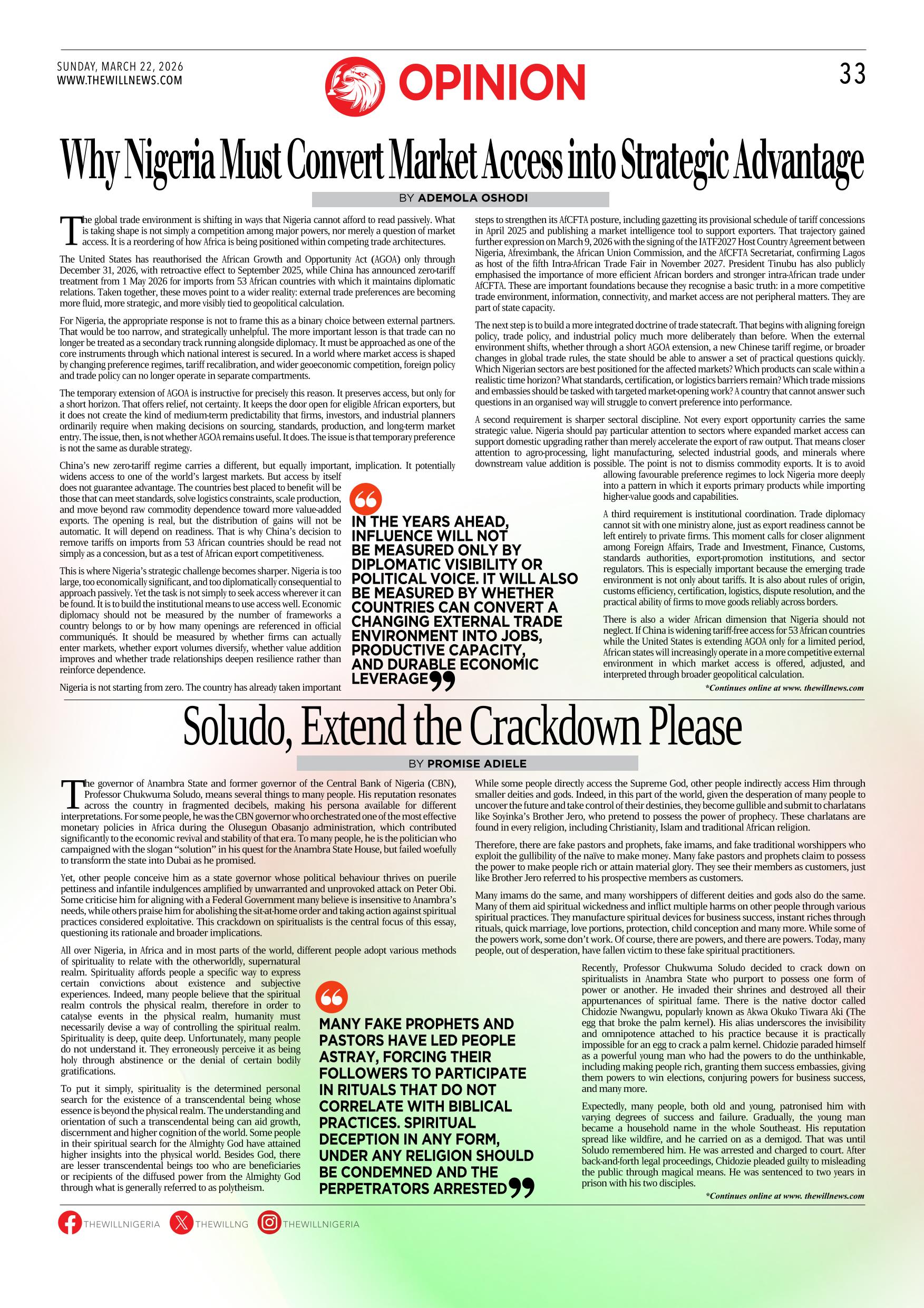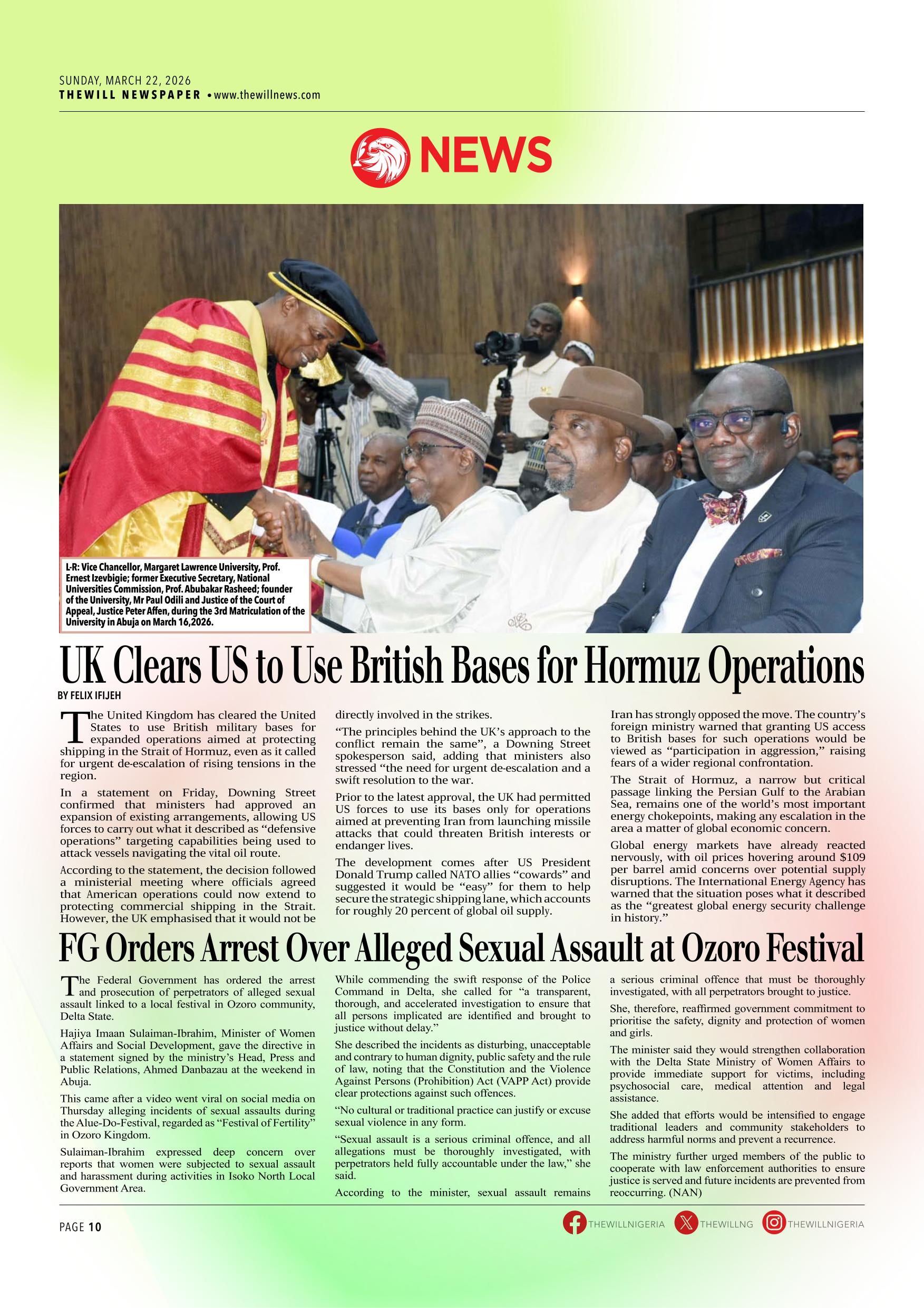 THEWILL NEWSPAPER MARCH 22, 2026