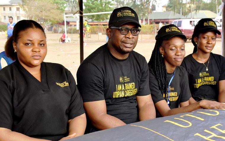 Certified Caregiver, Utopian Healthcare Services (UHCS), Enugu, Ms Chisom Okwum; Utopian Agency Care Lead, Mr. Anyigor Nwode; Community Outreach Lead, (UHCS), Mrs Ugochi Ezeokeke and Enugu State Coordinator (UHCS), Ms Mercy Ugwor, during UHCS Free Healthcare Services at the ongoing Sacred Heart Group of Schools Inter-House Sports Competition in Enugu on March 18, 2025.