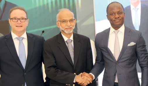 L–R: Lead, Climate Finance Africa, International Finance Corporation (IFC), Dr Riccardo Ambrosini; Senior Country Manager, IFC ( Nigeria, Sierra Leone and Liberia), Kalim M. Shah and CEO, Nigerian Exchange Limited (NGX), Mr. Temi Popoola, during a partnership signing agreement on socialising sustainable financial products, between NGX and IFC at the Green and Sustainability Bond Workshop on Wednesday 23 November 2022 in Lagos.