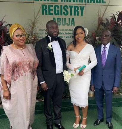 Afew weeks ago, one of Senator Adams Oshiomhole's sons, Emmanuel, tied the knot in a civic wedding in Abuja to his love interest, Chinwe Ufondu. It was a very intimate ceremony that had only a handful of people in attendance, including the former Edo State governor and