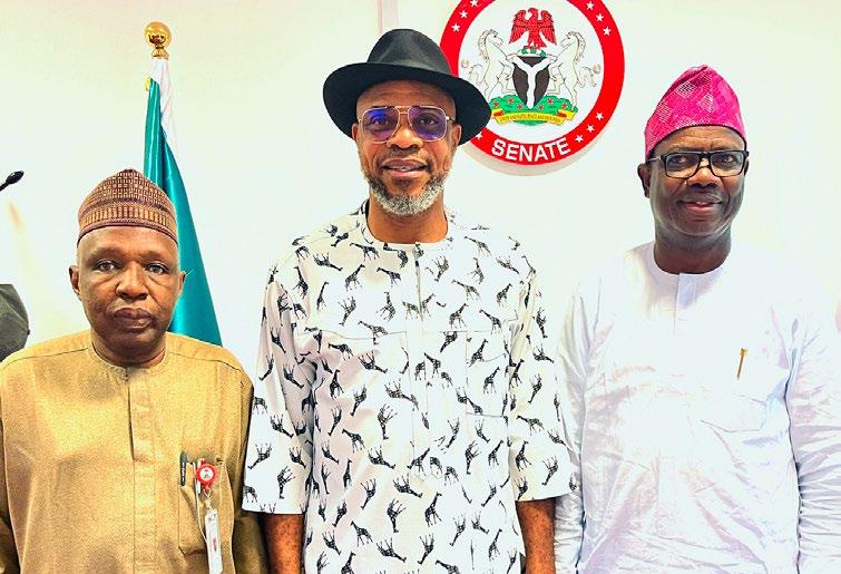 L-R: Director of Human Resources, National Commission for Colleges of Education (NCCE), Mr Dauda Yabani; Chairman Senate Committee on Federal Character and Inter-Governmental Affairs, Sen. Allwell Onyesoh and the Executive Secretary of NCCE, Prof. Paulinus Okwelle, during the senate committee’s review of the commission’s commitment to the implementation of the Federal Character principle at the National Assembly Complex in Abuja on September 11, 2024.