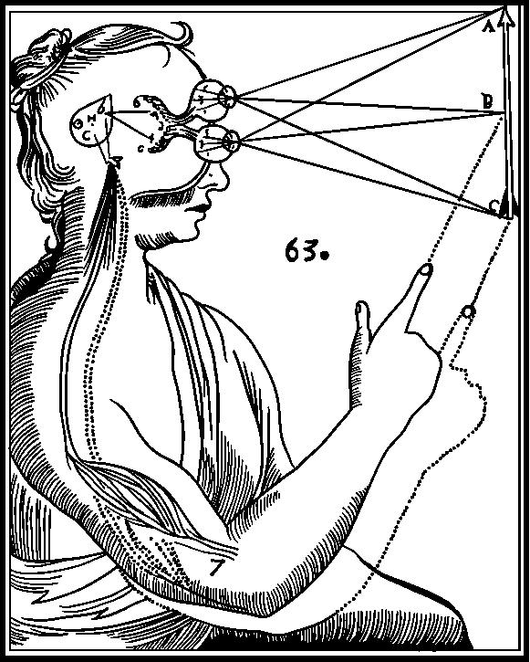 This image is an encapsulation of Descartes’s famous “Cogito ergo sum” dictum— “I think; therefore I am.” This argument was the cornerstone of Descartes’s philosophy, and accepting this as fact allowed him to move outward and attempt to prove the existence of God, a “philosophical perfection.”