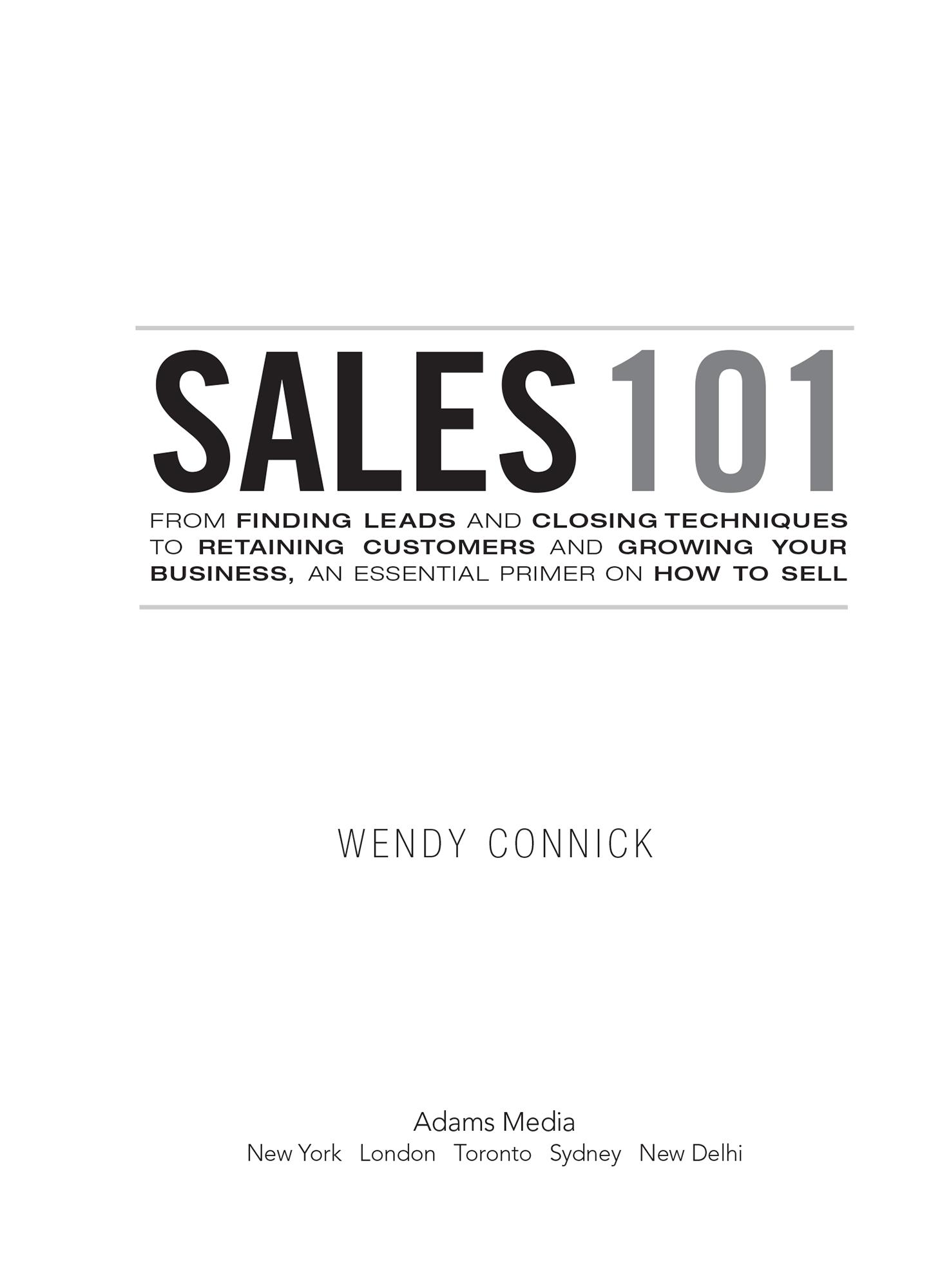 Sales 101 walks you through the sales process in clear, straightforward entries. Perhaps you’re new to the profession or are just thinking about getting into it. Maybe you’ve been doing it for years or need to integrate sales techniques into your current role. Whatever your relationship to sales, this book will offer you useful tips showing you how to get better at it.