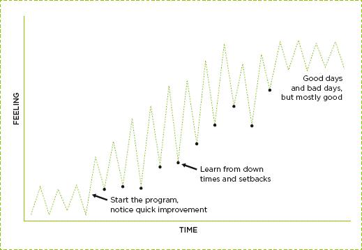 Even the setbacks on your journey can help you move forward. If you pay attention and track your progress, a bad day gives you good data. When your progress wavers, pay attention. Don’t judge yourself, but learn from your mistakes, as we discussed in chapter 6. What causes setbacks with your food or tness? Is it when you get too busy? Is it when you don’t get enough sleep? Notice patterns, cycles, and reactions — not so you can beat yourself up or feel guilty, but so you have more information from which to make healthier decisions in the future.