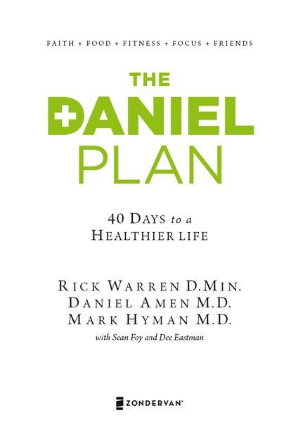 The Daniel Plan o ers health, tness, and nutritional information and is for educational purposes only. This book is intended to supplement, not replace, the professional medical advice, diagnosis, or treatment of health conditions from a trained health professional. Please consult your physician or other healthcare professional before beginning or changing any health or tness program to make sure that it is appropriate for your needs — especially if you are pregnant or have a family history of any medical concerns, illnesses, or risks.