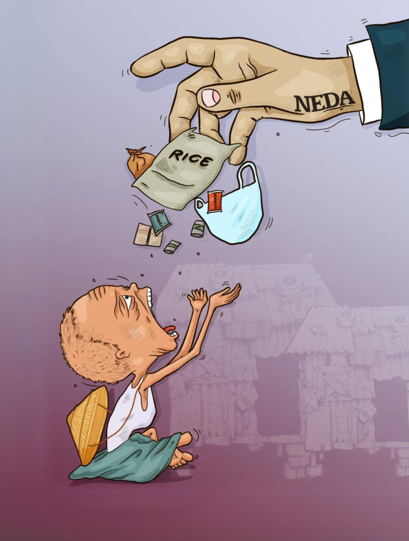 NEDA’s P64 budget meal receives backlash by Angelle Miyumi O. Gonzales he National Economic and Development Authority’s 64 pesos budget for food per person received criticism from parents and teachers of Balaoan Central School.This amounts to 22 pesos per meal in a day.