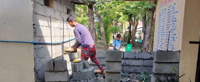 COMFORT CHECKED. Mr. Pablito Tuvera, laborer, took charge in the construction of additional comfort rooms to be used by athletes for their comfort in the upcoming R1AA.