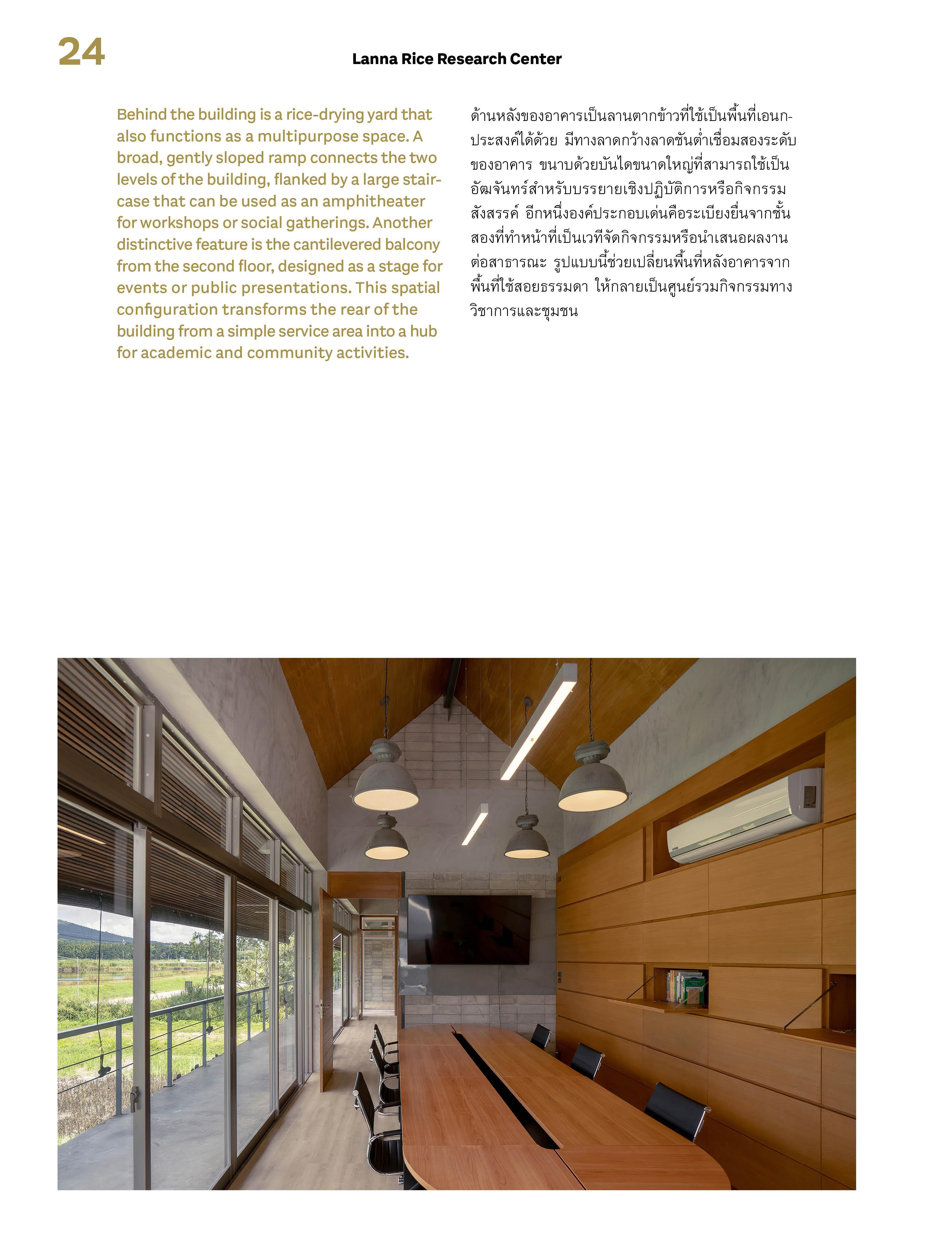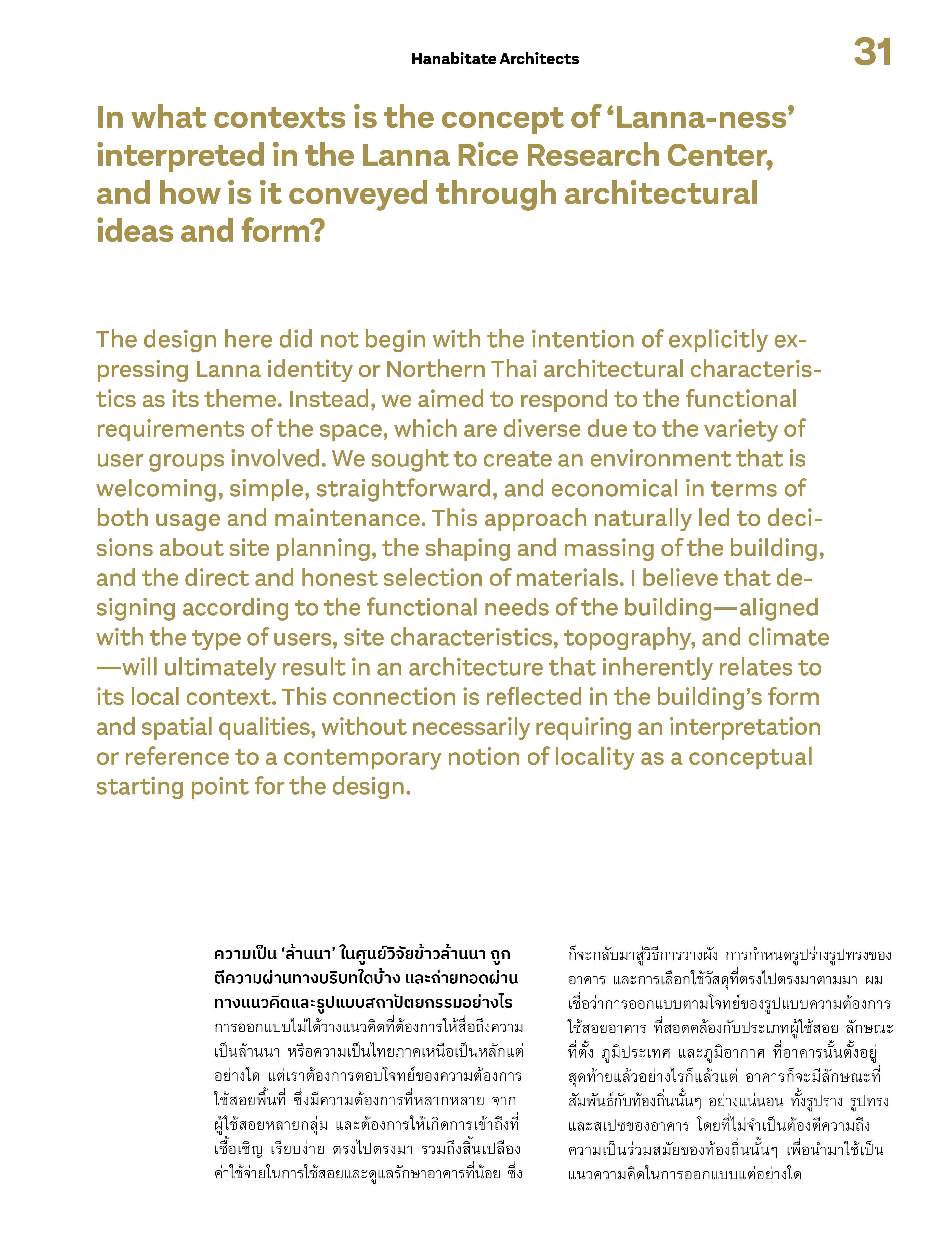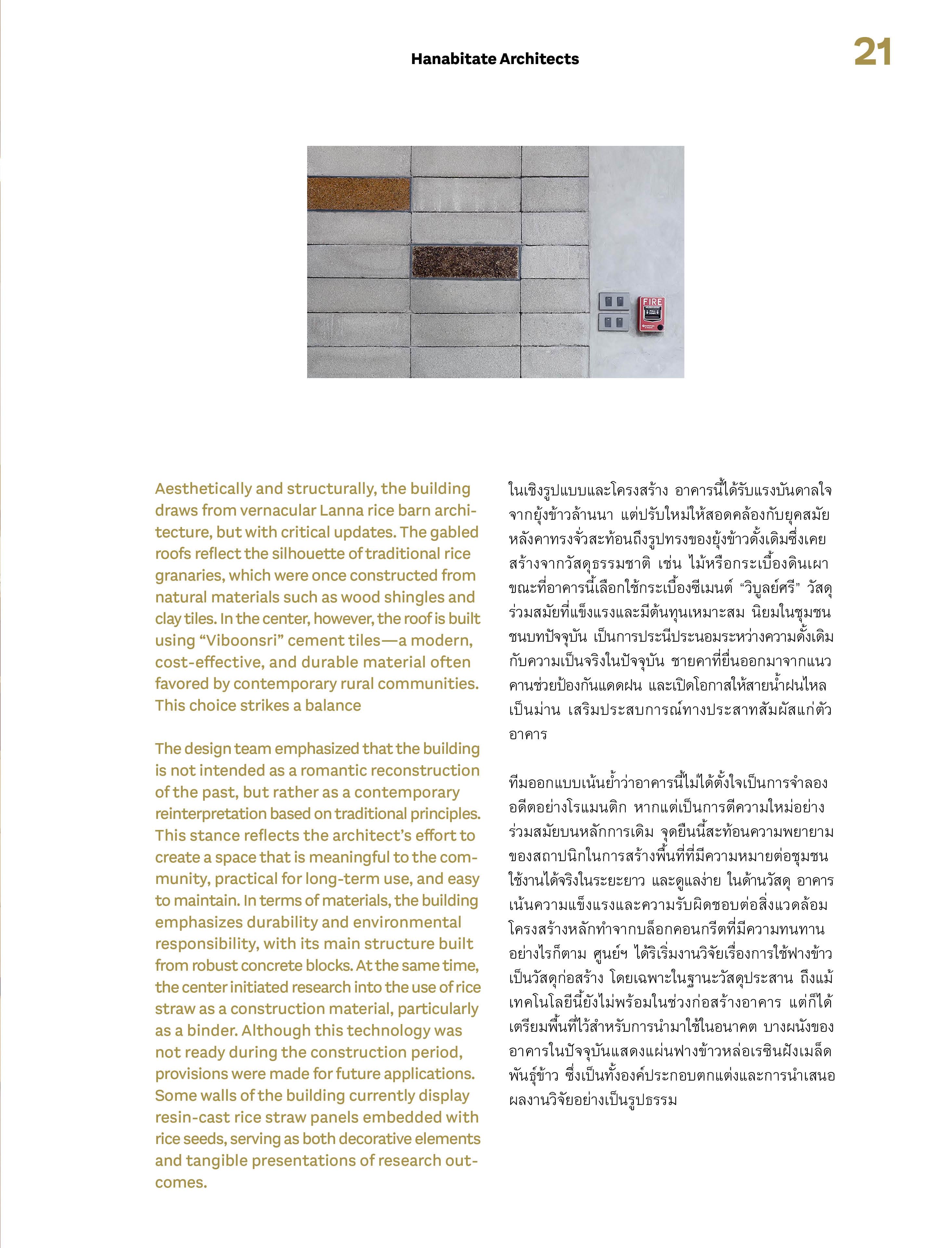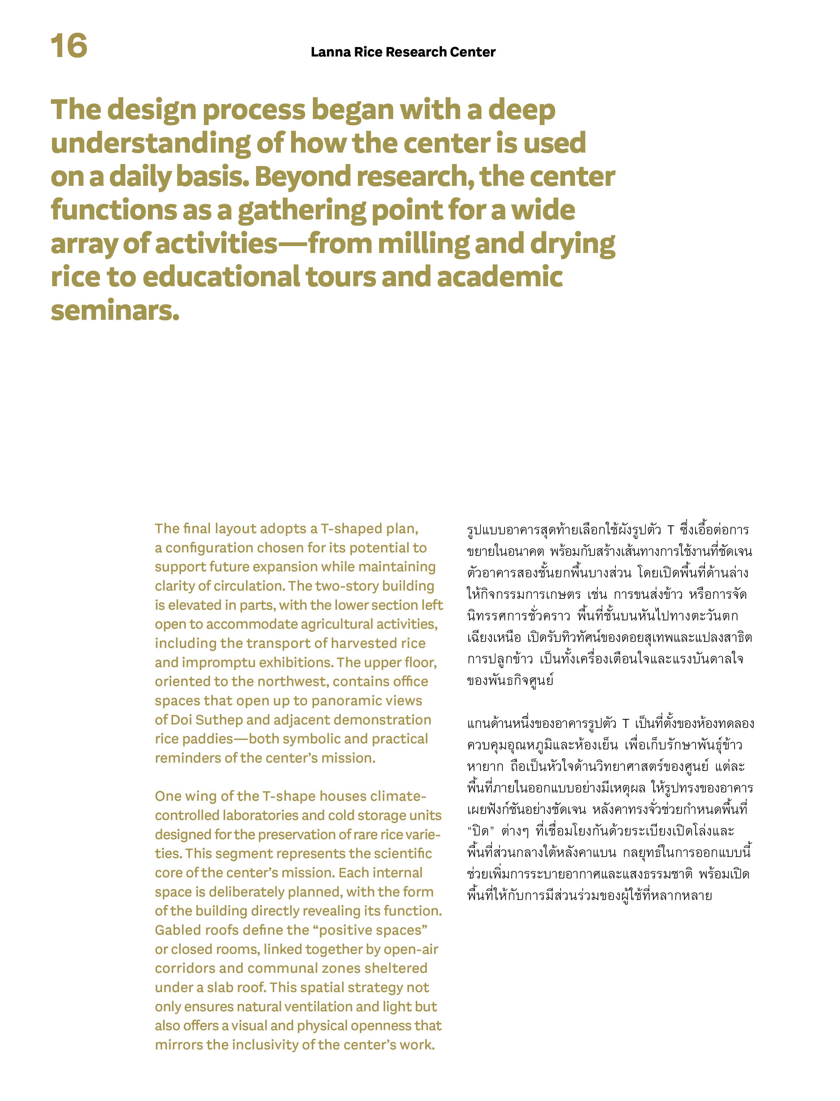 “Villagers cultivate rice as it is their invaluable asset.” This sentiment encapsulates the cultural and agricultural foundation upon which the Lanna Rice Research Center at Chiang Mai University is built. In Northern Thailand, rice is more than a staple crop—it is a symbol of identity, a living heritage, and a vessel of intergenerational knowledge. The architecture of the center, designed by Hanabitate Architects under the direction of Prof. Dr. Nawit Ongsavangchai, was developed to express these ambitions through spatial clarity, contextual sensitivity, and long-term sustainability.
