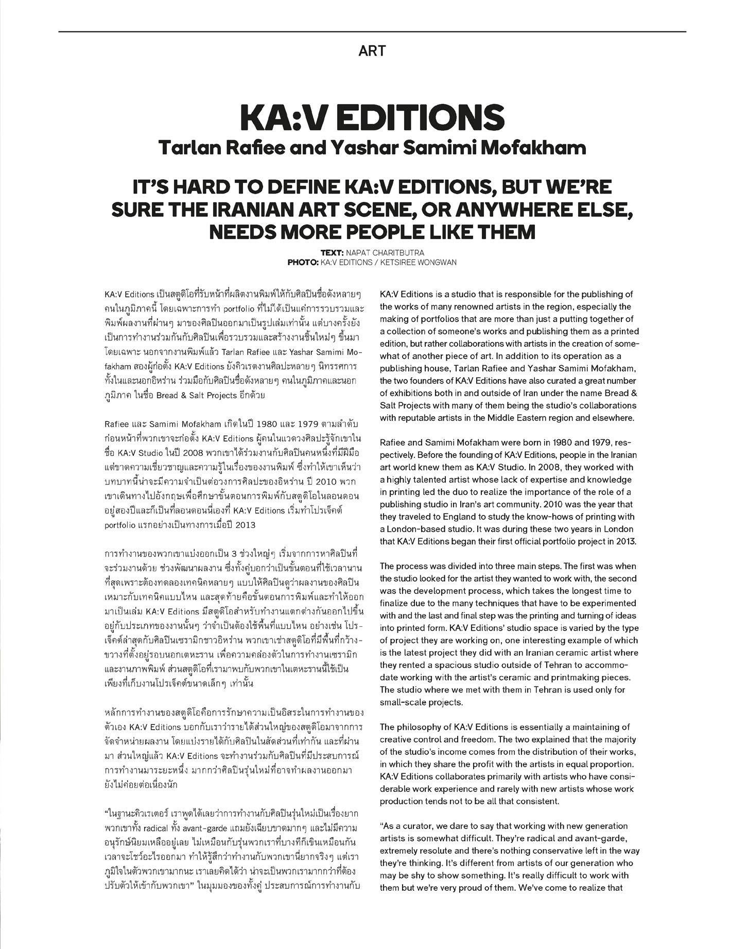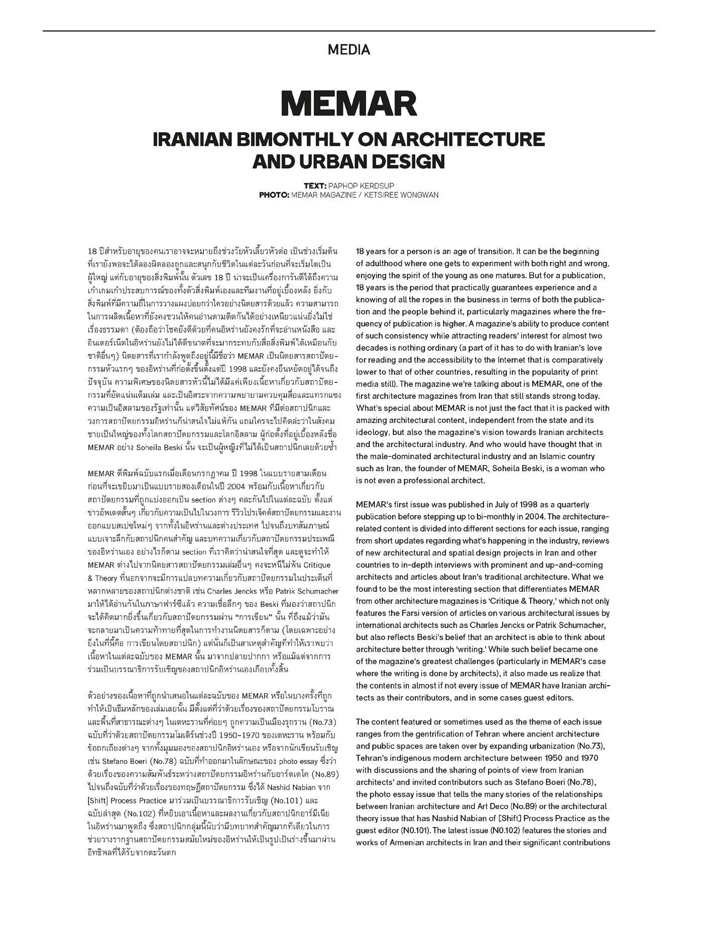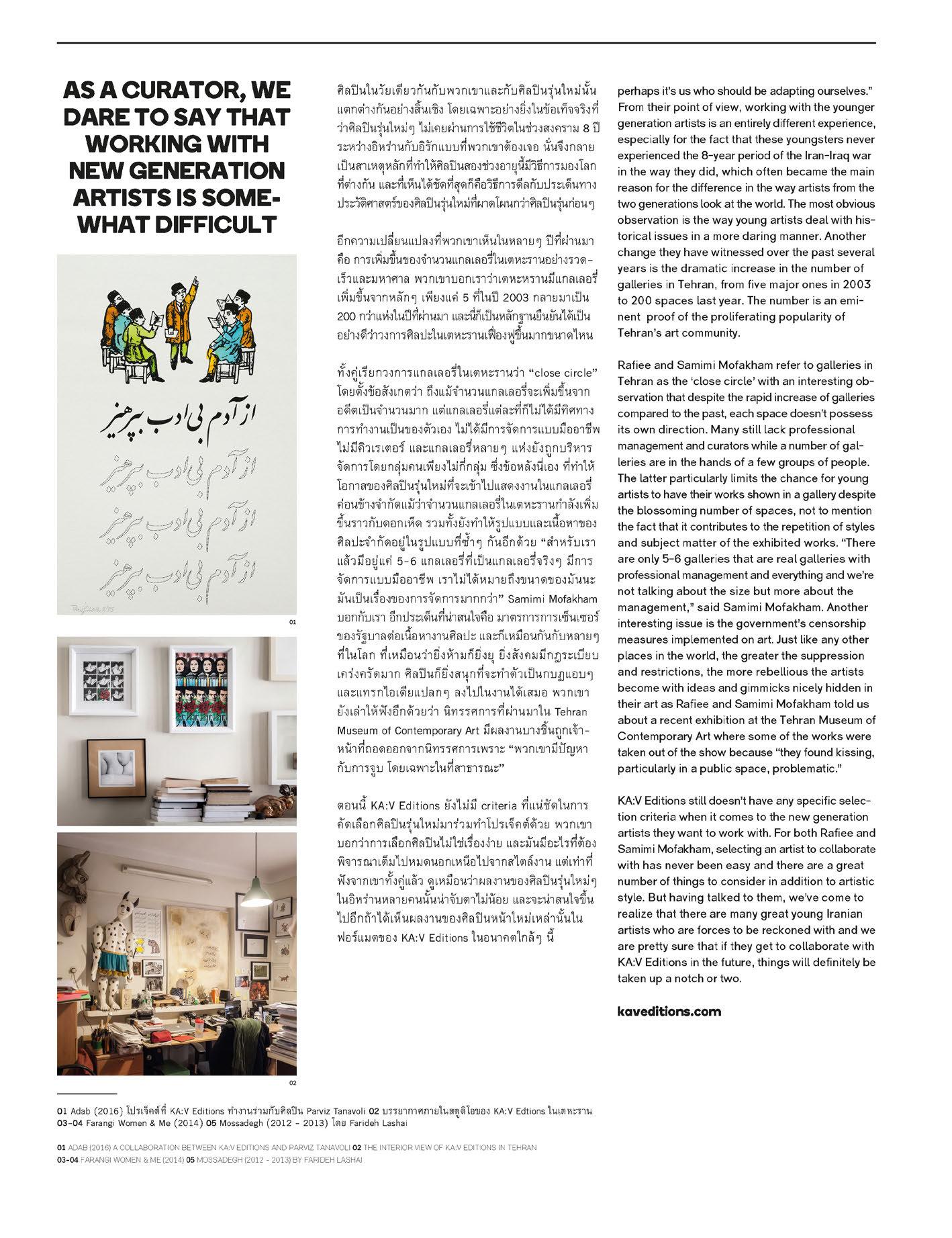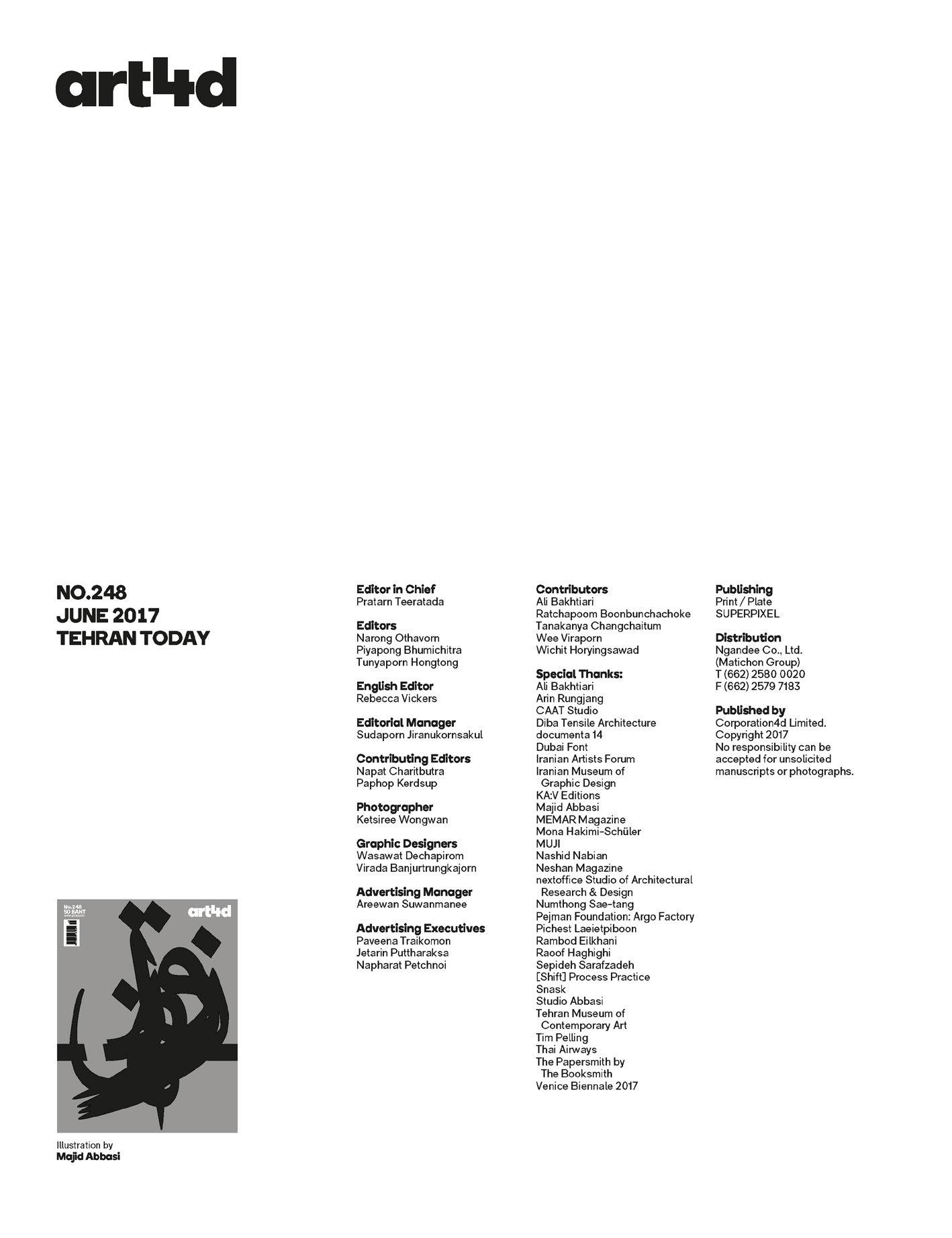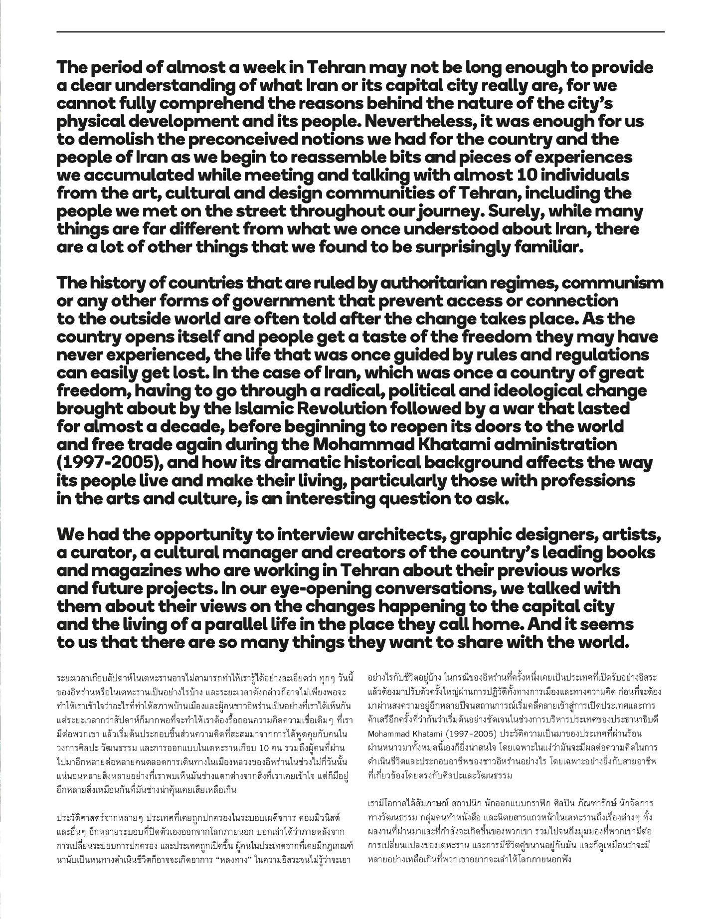 art4d 248: Tehran Today was produced in the same year that Thai Airways launched its first direct flight between Bangkok and Tehran. The new route enabled our editorial team to travel more than 7,000 kilometers to the Iranian capital, where we met architects, designers, artists, publishers, and cultural practitioners who were shaping a vibrant creative landscape within a complex social and political context.