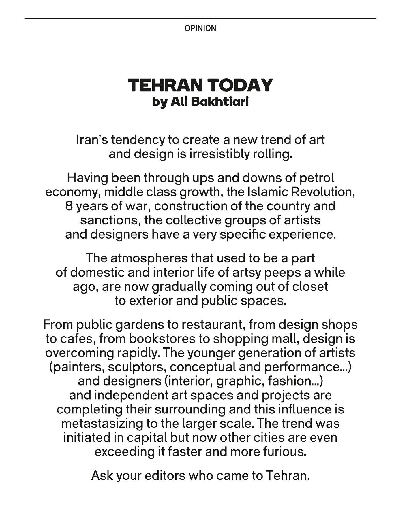 Early March 2026, at a time when Iran is once again dominating global headlines, we revisit a special issue of art4d published in 2017 that explored another side of the country—its architecture, design, and contemporary art scenes.