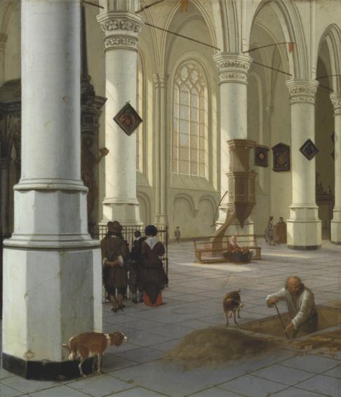 OpDRaCHtbRON 1 Hendrick van Vliet, de schilder van bron 1, maakte meer schilderijen van het interieur (de binnenkant) van kerken. Dit is de Nieuwe Kerk in Delft, geschilderd in 1665.