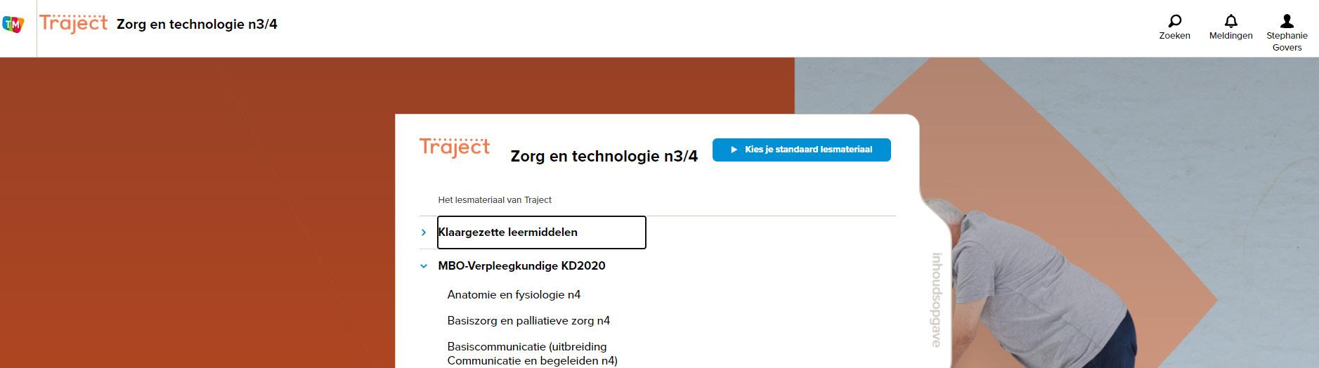 Als de student naar dit arrangement wilt gaan, gaat hij/zij naar de inhoudsopgave in zijn online leeromgeving en ziet hij dit onder ‘Klaargezette leermiddelen’. Zie afbeelding hieronder.