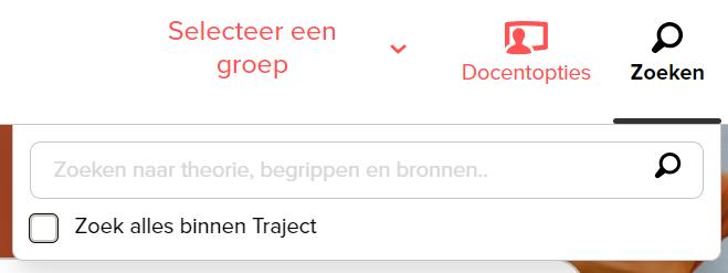 Let op! Zet dan wel het vinkje ‘Zoek alles binnen Traject’ aan. Anders zoekt die alleen in het door jou geselecteerde hoofdonderwerp.