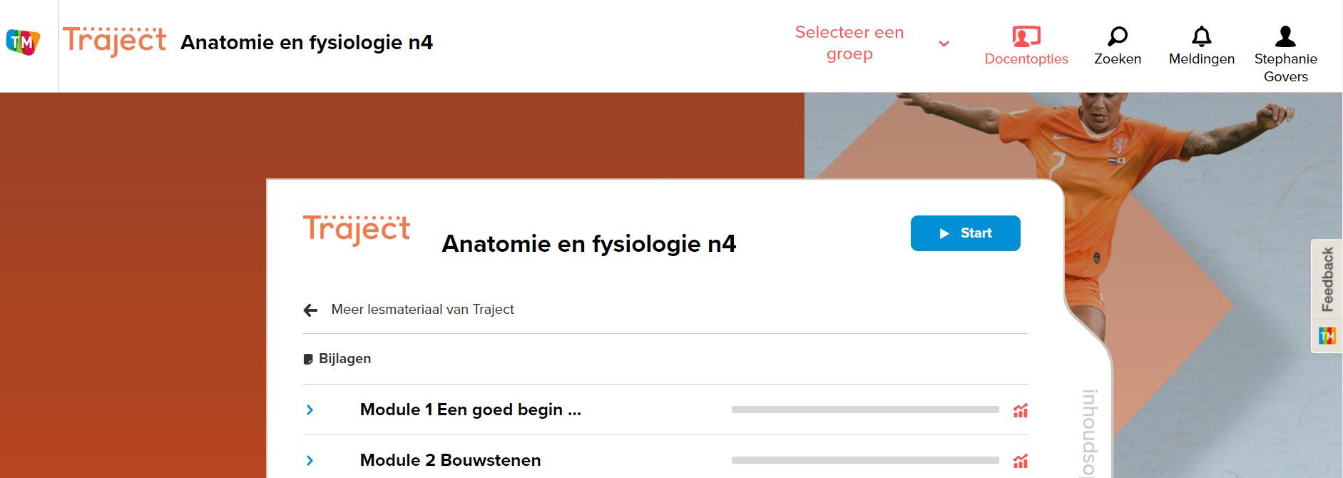 Door te klikken op een module zie je (net zoals jouw studenten) het onderstaande: