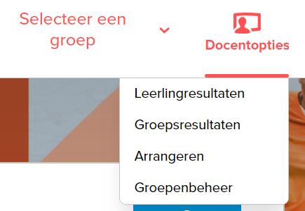 • op ‘Docentopties’ te klikken en te kiezen voor ‘Leerlingresultaten’ (kies je hier voor ‘Groepsresultaten’ dan krijg je een anoniem overzicht van de resultaten van de groep te zien).