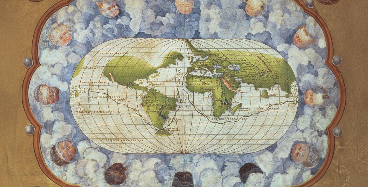 Bron 18 Wereldkaart in een atlas uit 1543. Gemaakt door de Italiaanse
