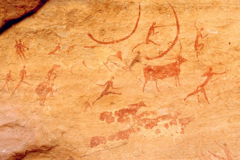 Bron 1 Dieren en mensen op de wand van een grot Grotschildering van ongeveer 10.000 jaar oud in Afrika.