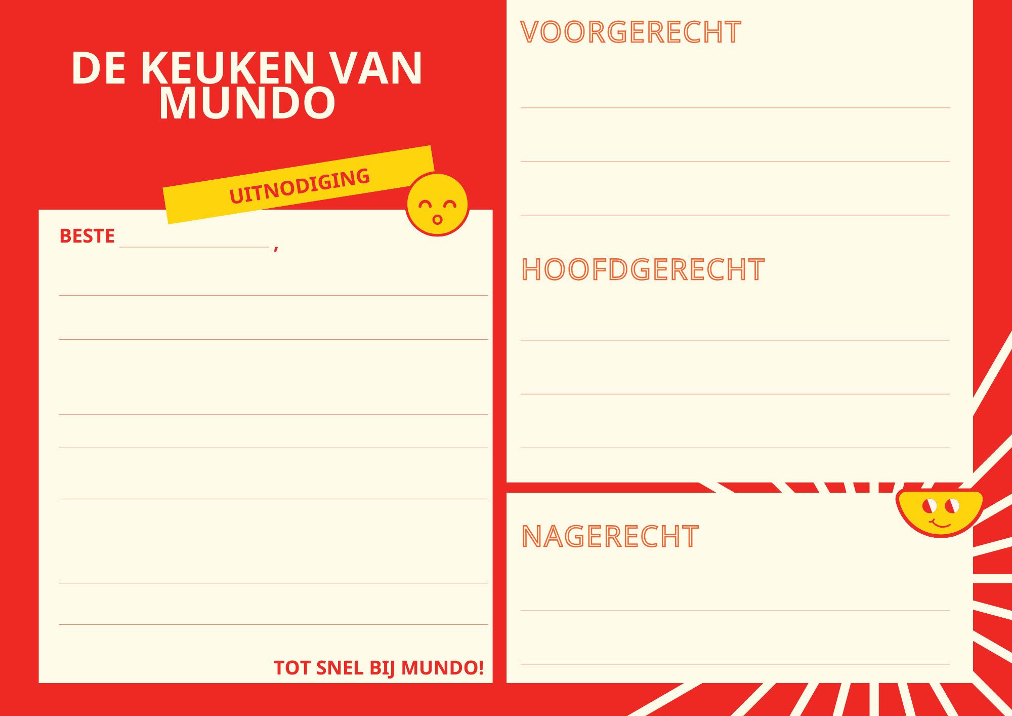 b Maak een menukaart met heerlijke nieuwe gerechten. Bedenk een voorgerecht, hoofdgerecht en een toetje.