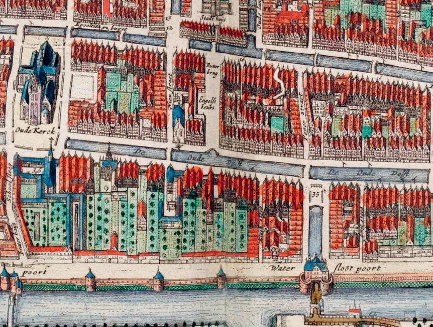 Bron 8 Een stukje van de kaart van Delft uit 1649.