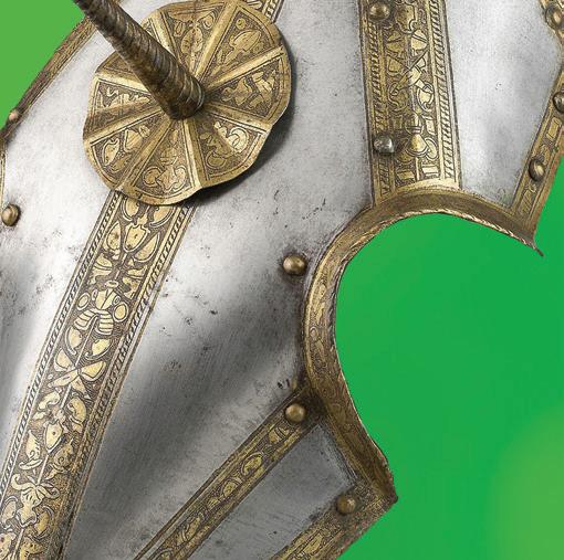 Knights wore a suit of armour in battle in the Middle Ages, as did their horses! A head-piece from such horse armour is shown on the front cover of this book. This armour protected the horse while the spike provided an extra weapon. Combat on horseback is difficult. Knights had to practise for long periods, together with their horses. They also competed in tournaments as preparation for battle. Other weapons were introduced towards the end of the Middle Ages. Gunpowder was invented, as were the crossbow, longbow and large bow and arrow. As these weapons could both penetrate armour and be used from great distances, hand-to-hand combat was no longer suitable. Especially if you first lured the knights and their armoured horses into a marshy area, which is what happened at the Battle of Agincourt, in France (1415). The knights proved too heavy and bulky to move through the mud... This marked the end of the age of knights. Although knights still competed in tournaments after this time, this was more of a combat sport with an audience.