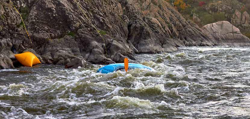 no response, because no one heard the calls. The tall cliffs blocked the radio signal from reaching the park’s headquarters or anyone else on land, and no boats were on the lake. Another wave crashed into the boats, and Farrington capsized a second time. When he got back into the kayak, the radio was gone, as were his mobile phone and GPS unit.