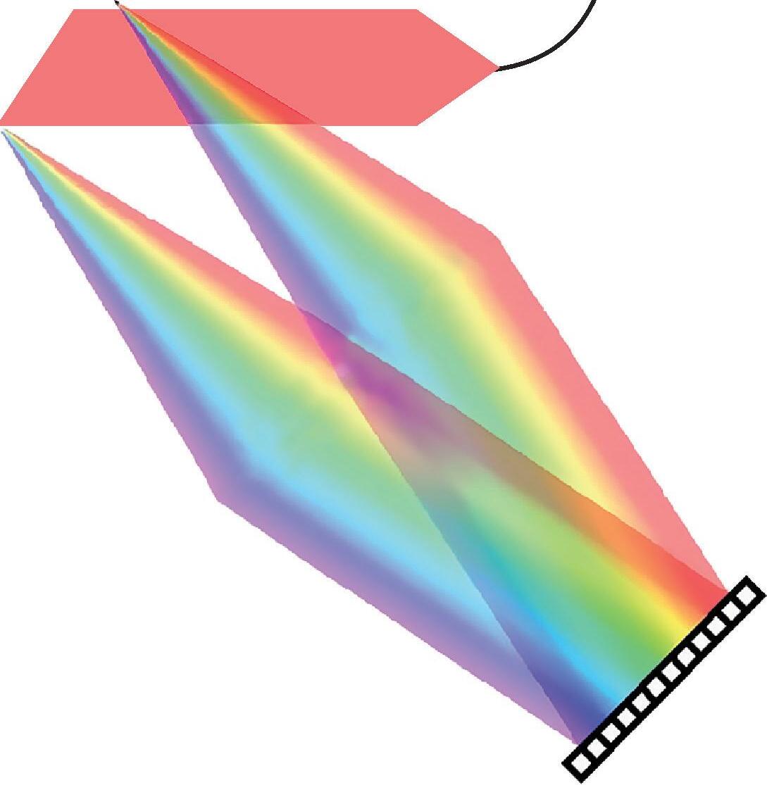 Na prática, a luz de banda larga é normalmente um diodo LED que emite luz na banda visível e infravermelha, conforme ilustrado na Figura 1-25. O procedimento OCT deve ser não