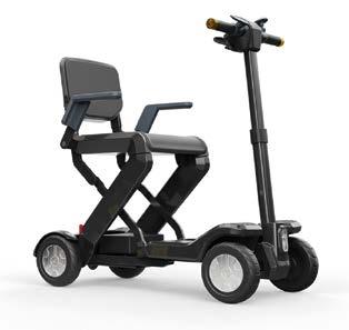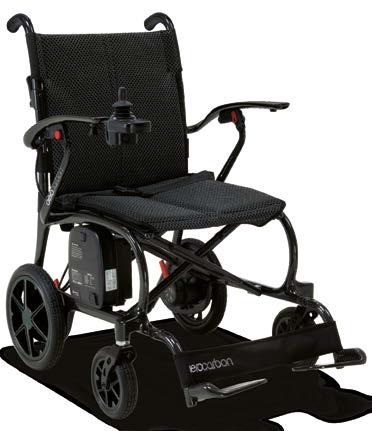 Mobility equipment manufacturer Pride Mobility has added three folding power wheelchairs to its Jazzy brand which are designed to enhance an onthe-go lifestyle. The power chairs – Jazzy Max, Jazzy Swift and Jazzy Injection – are all foldable, portable and comprised of durable carbon fibre. Supporting users up to 182kg, the Jazzy Carbon Ultra Max is ideal for customers seeking robust support and heavy-duty performance without the bulk. For those seeking a more compact design, the Jazzy Carbon Swift (pictured left) weighs in at 10.26kg and features a sleek, foldable design for quick storage and portability. The Jazzy Carbon Injection offers a budget-friendly alternative with user-friendly controls and a quick-folding frame. Paul Clayton, Commercial Director at Pride Mobility commented to THIIS: “By introducing a budget-friendly model, a compact solution, and a heavy-duty option, we’re focused on meeting the full spectrum of needs for our end users.”