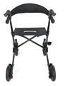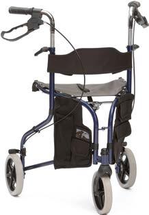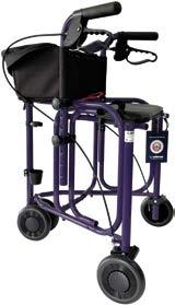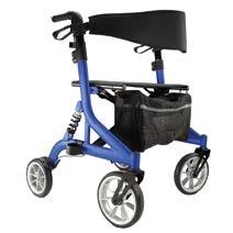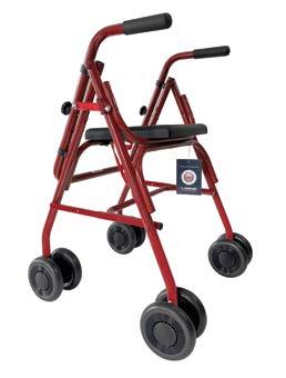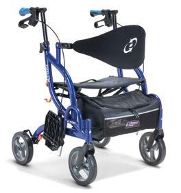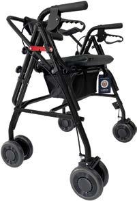 Designed for both indoor and outdoor use with large 9” front wheels and 12” at the rear, it has a lightweight aluminium frame and is foldable. Safe and easy to control it promotes a stable, upright walking position while allowing users to take a break on a seat which provides proper postural support. It comes complete with a removable underseat bag.