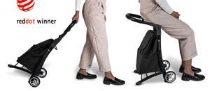 The lightweight and versatile Amble shopping trolley makes it simple for the user to sit down at the push of button and by folding down the bar. With a weight capacity of up to 100kg and suspended wheels for sturdy seating, the user can rest comfortably whenever they need. Easily attached or detached from the frame, the water-resistant bag can carry up to 30kg at a time.