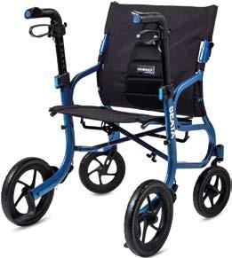 The Torro Outdoor Adventurer rollator is the ideal companion for active individuals who want to maintain their independence and mobility. Designed to perform across a variety of terrains, including cobblestones, gravel paths, and forest trails, its extra-large pneumatic tyres effortlessly navigate uneven surfaces. The padded back support ensures enhanced comfort and safety while seated, while the convenient onehanded folding mechanism allows for easy and efficient storage. The rollator also includes a practical comfort bag, providing a secure and dry place to store personal belongings.