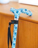 personality to a mobility essential, while the coordinated wrist strap adds reassurance when on the move. Lightweight yet sturdy, it adjusts easily to achieve the correct height for the user, helping to promote better posture and confidence when walking.