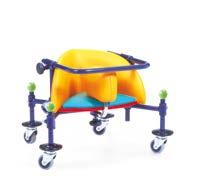 Birillo is a corner seat walker for children, designed to promote upright sitting and active movement. An adjustable abductor supports correct pelvic positioning and spinal alignment, encouraging effective lower limb mobility during therapy and play. Its stable design provides postural security while allowing self-initiated movement, making it suitable for early rehabilitation and developmental programmes. The distinctive shape and bright colours help create a stimulating environment that encourages engagement.