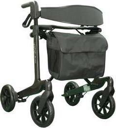 The Alerta Four-Wheel Carbon Ultra-Lite Rollator claims to be one of the lightest rollators on the market. It is equipped with a seat, backrest and bag, and features a robust foldable frame and adjustable handle height. It has four robust wheels for added stability and an ultralightweight carbon fibre frame for very easy transport and manoeuvrability.