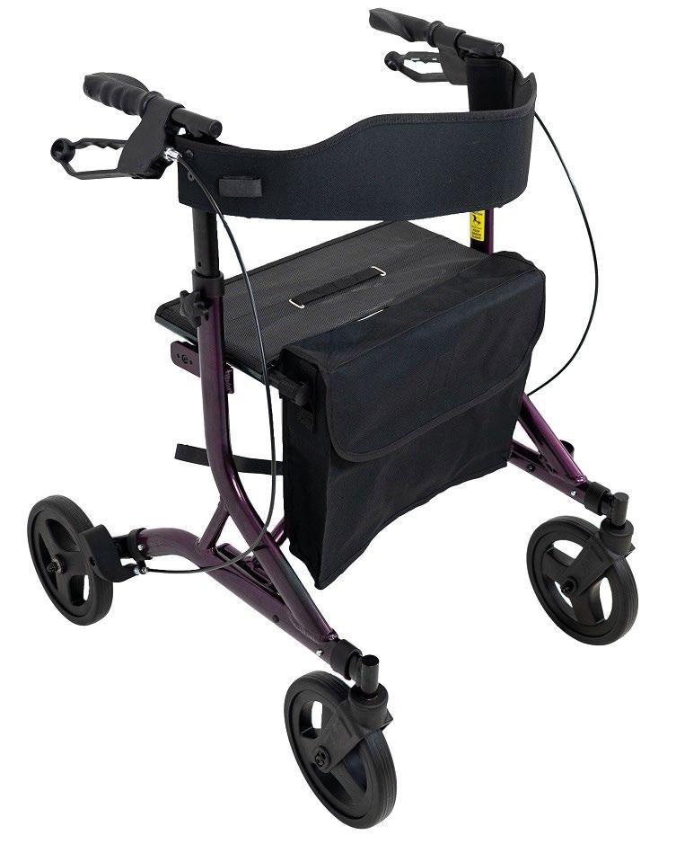 “The walker comes with an attachable basket that allows you to carry essentials and shopping, quickrelease front castors make it even lighter and smaller to store, and it has a comfortable backrest for the user when they need to sit on the rollator.