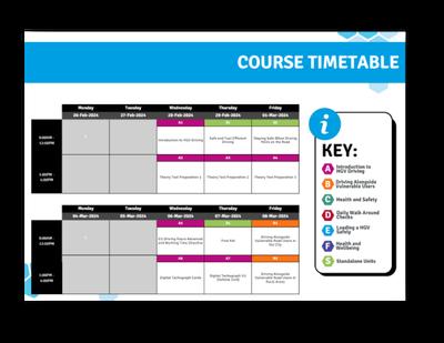 Wehopeyou'reexcitedtostartlearningwithourHGVDrivingcourse.There'salotinstoreforyouoverthenext12 weekssohere'saneasytofollowguideonyourupcomingcourseschedule.