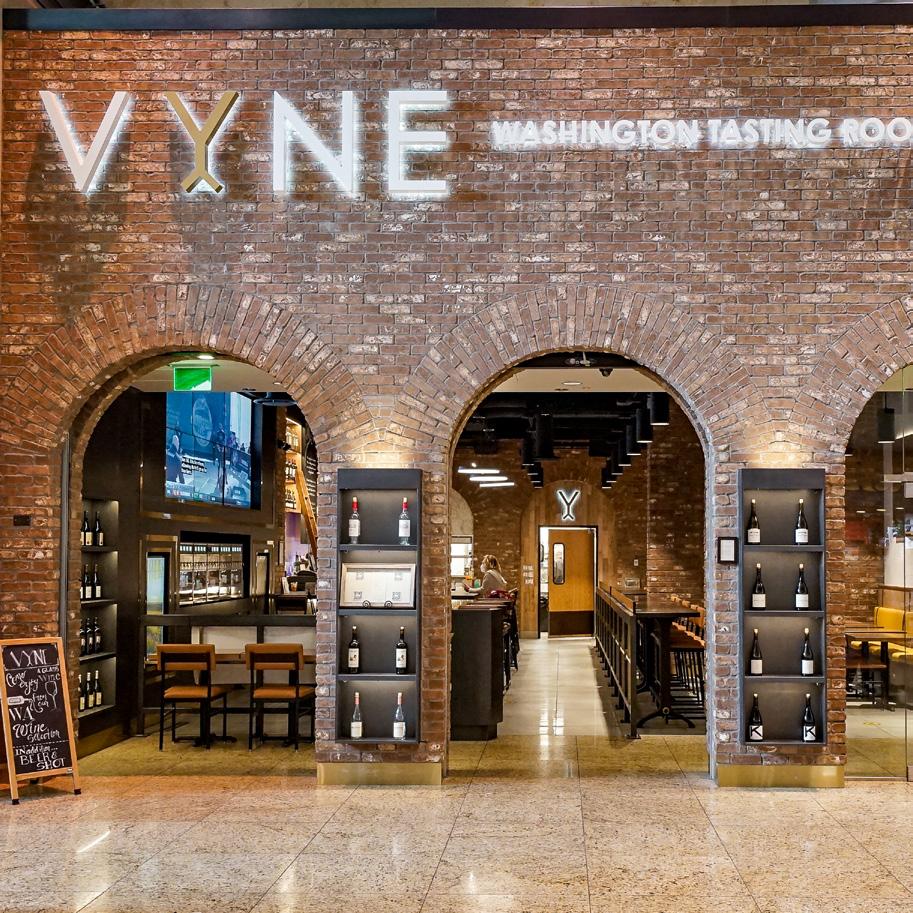 Vyne at SEA was born from dynamic collaboration among airport decision-makers, local artisans, designers, and technology leaders. The design draws inspiration from foodcentric Capitol Hill and brings travelers on a cutting-edge, interactive voyage—an indulgent, culinary escape into the wonderful world of Washington wines. Guests are served and educated by expert sommeliers and wine-certified bar staff, pouring local vines from state-of-the-art wine dispensers.