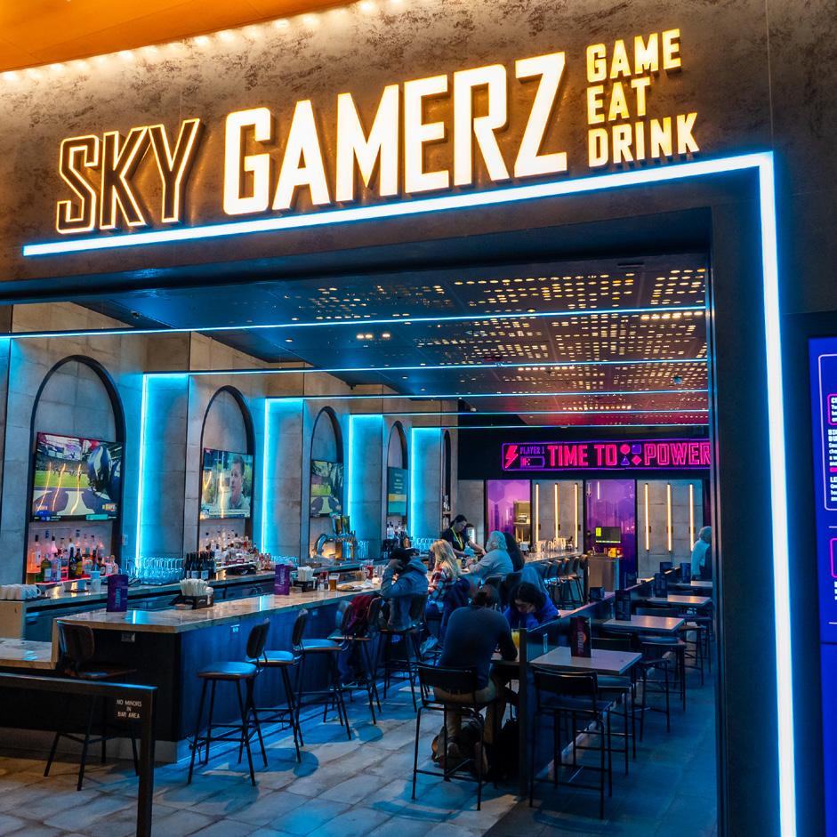 Truly one of the most unique restaurants in or out of the terminal, Sky Gamerz allows travelers to spend dwell time gaming. A unique blend of the past and present, the space is infused with true ‘80s vibes. Blue laser lights, pink neon signage, and more games than one can play on a layover await guests. Sky Gamerz doesn’t just bring fun—it also delivers quality food and cocktails that fit the restaurant's theme.
