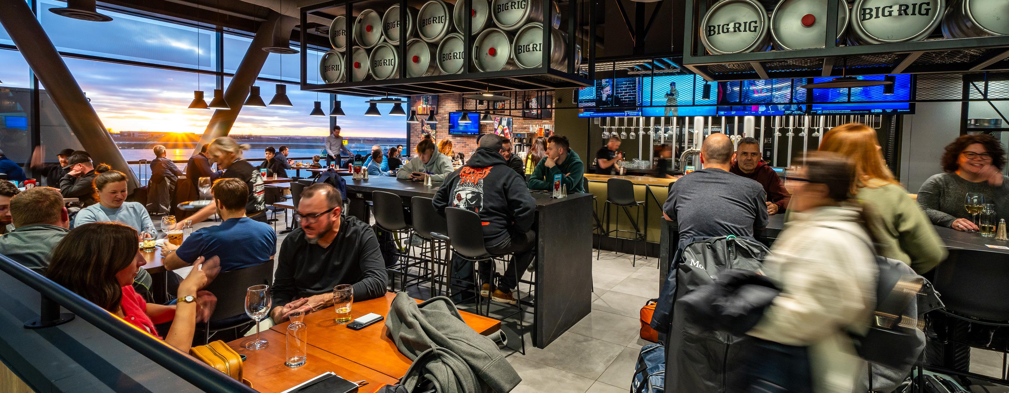 Designed specifically for a beautiful airside corner space in SLC’s Terminal Plaza, Roosters Brewing Co. is an open and modern extension of a true local favorite. Here, travelers enjoy the view of Salt Lake City’s Wasatch Mountain range through three-story windows while enjoying creative, hearty local plates backed by a menu of unique craft beers and cocktails. Created for conversation and conviviality among friends, Roosters is so inviting that it was the place of choice for the returning U.S. men’s Olympic bobsled team to celebrate their 2022 gold medal win.